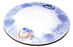 明治27年深川忠次により創立された深川製磁、その卓越した製陶技術は明治、大正、昭和、平成と4代に渡って宮内省御用達を拝命しております。明治期の意匠『竜鳳凰唐草』は明るく澄み切った染付が特徴で、品格ある深川様式の代表といえるもので、瑞鳥「鳳凰」は古来より高貴な文様です。