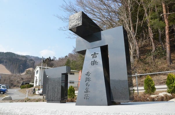 2011年3月11日より3年が経ち、多くの人達の想い、吉浜の2人の村長への顕彰などを込めた津波記憶石が完成した。正面には「吉浜 奇跡の集落」と隷書体で彫られている。左にある石碑には今回の津波のことを忘れずに後世へ遺す碑文が刻まれている。
