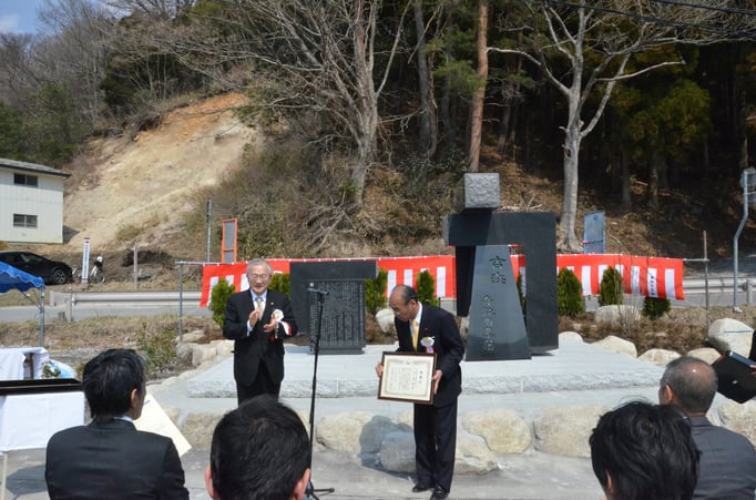 2013年3月から始動した岩手県大船渡市三陸町吉浜の全優石津波記憶石プロジェクト。2014年3月25日に除幕式の日程が決定し、最終調整のため清水氏は岐阜県多治見市の石玉石材さんへと向かった。